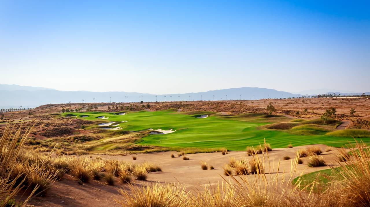 Condado de Alhama is een echte Nicklaus Course. Een lange golfbaan met brede fairways en door bunkerpartijen verdedigde greens. Vijf meren brengen veel water in het spel.