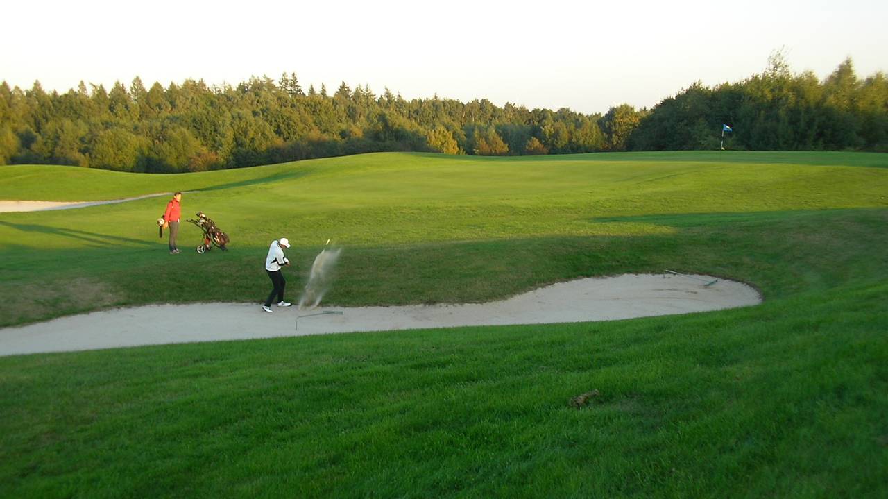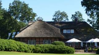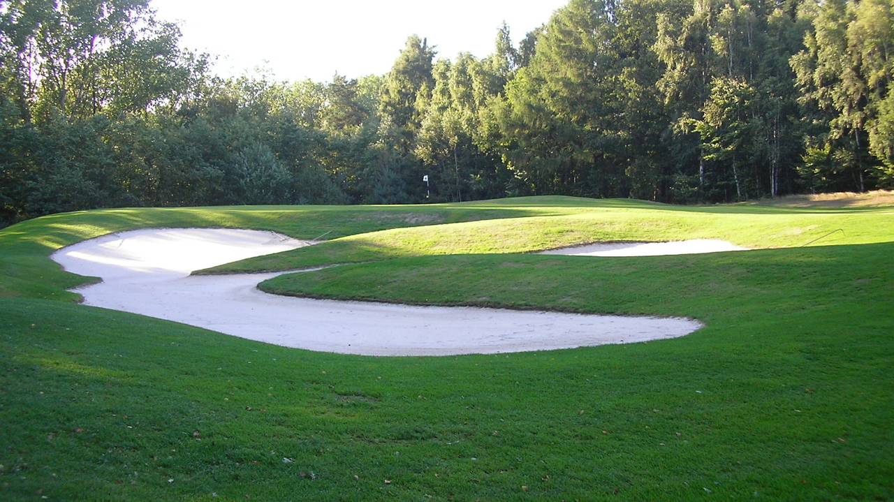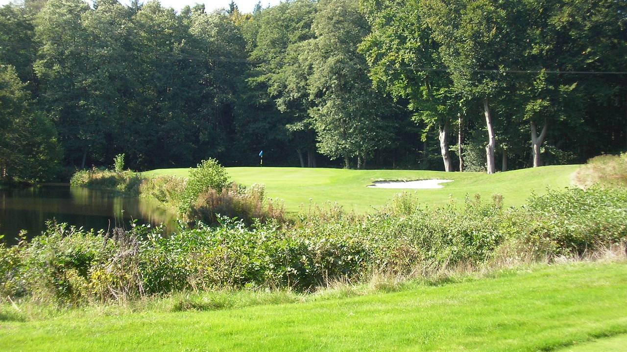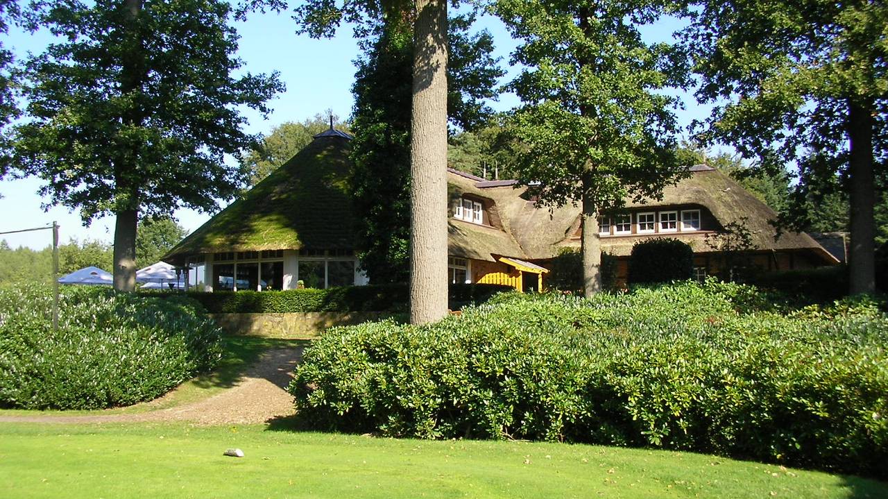 Een vlakke baan midden in de natuur en omringd door oude bomen. Een prachtige oude boerderij fungeert als clubhuis met uitstekende gerechten.