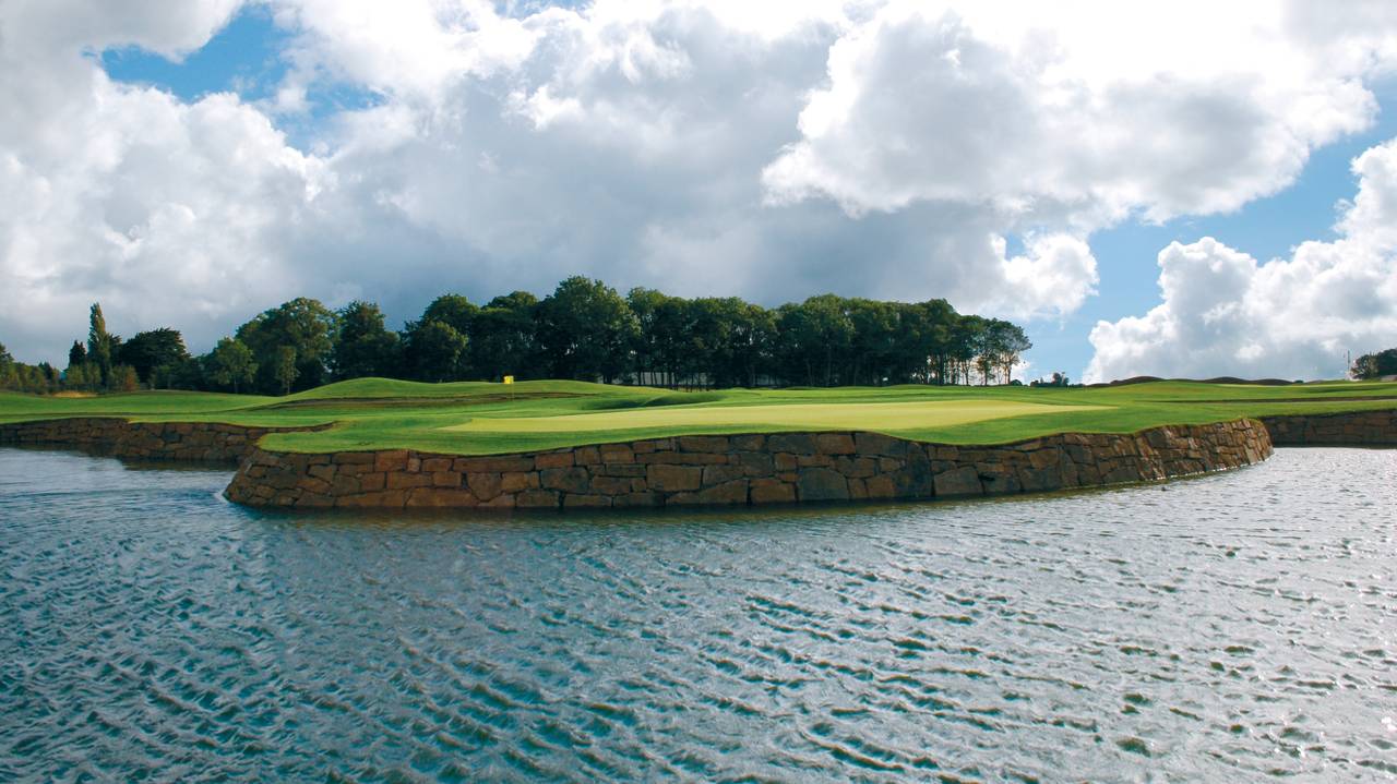 Topbaan bij het gelijknamige hotel. Geweldig ontwerp, hoog op de oevers van de Liffey, met grote greens, enorme bunkers en pittige waterhindernissen.