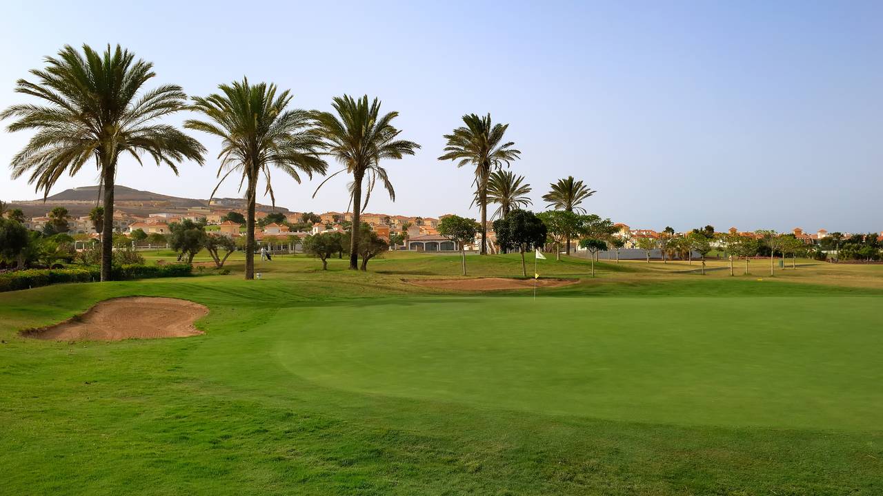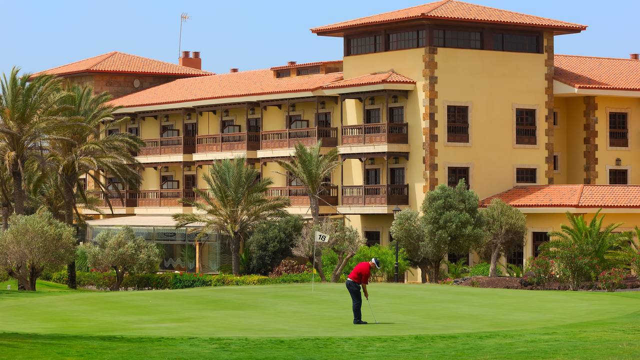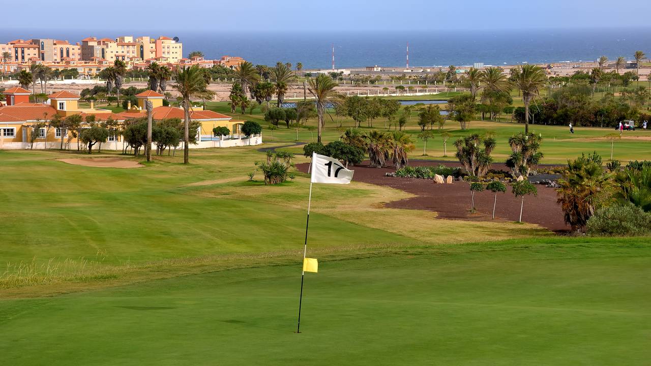 Geef online je wensen doorFuerteventura Golf Club is situated to the south of the village of Caleta de Fuste, just 8 kilometres from the airport and the clubhouse is located on the premises of the 5-star Luxury Hotel Elba Palace Golf.