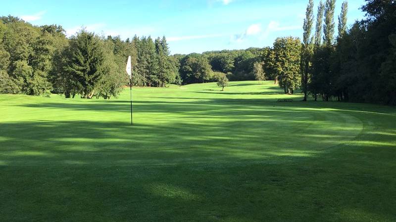 Een mooie bosbaan met brede fairways en een kronkelend riviertje.
