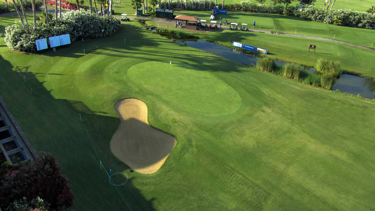 Moderne (1998) aantrekkelijke golfbaan, hoewel gelegen in het meest geurbaniseerde gedeelte van het eiland toch een oase van rust. Dit wordt versterkt door de diverse waterhindernissen en het ecologische clubhuis.