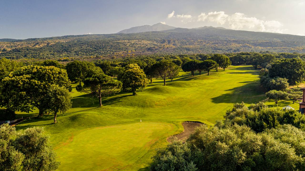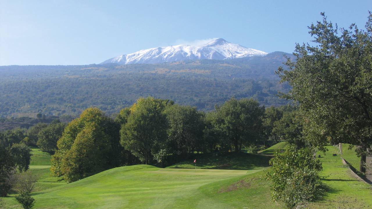 Golfen onder de rook van de Etna! De hoogste berg van Italië vormt een fantastisch decor voor een rondje op deze leuke baan in fraaie natuurlijke omgeving.