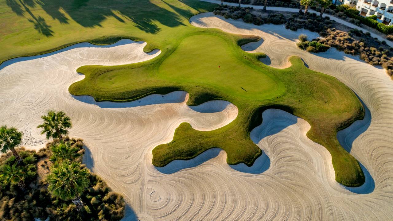 Een beetje korte resort baan, maar wel een leuke! Speelse lay-out met meertjes en diepe bunkers. Brede fairways.
