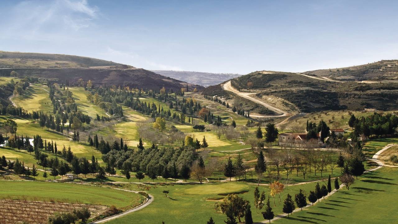 Minthis Hills Golf Club is de oudste 18‑holes‑baan op Cyprus. Oorspronkelijk ontworpen door Donald Steel in 1994. De baan past naadloos in het heuvelachtige landschap en is omgeven door olijf‑, amandel‑ en walnotenbomen. De natuurlijke waterpartijen komen regelmatig in het spel en de par 3 met eilandgreen is zeer uitdagend.