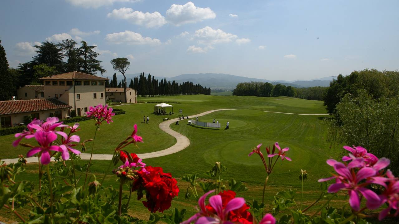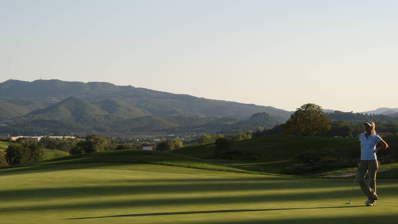 Een bijna Schots aandoende baan, die de contouren van het heuvellandschap volgt en prachtig uitzicht op de Toscaanse heuvels biedt.