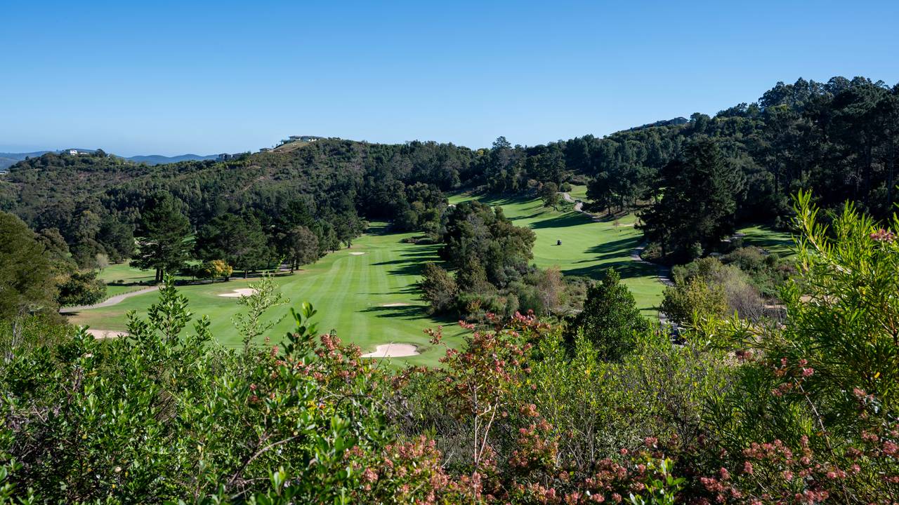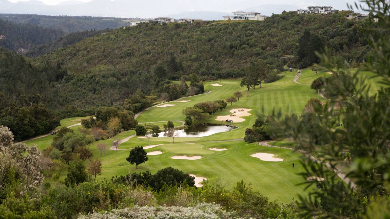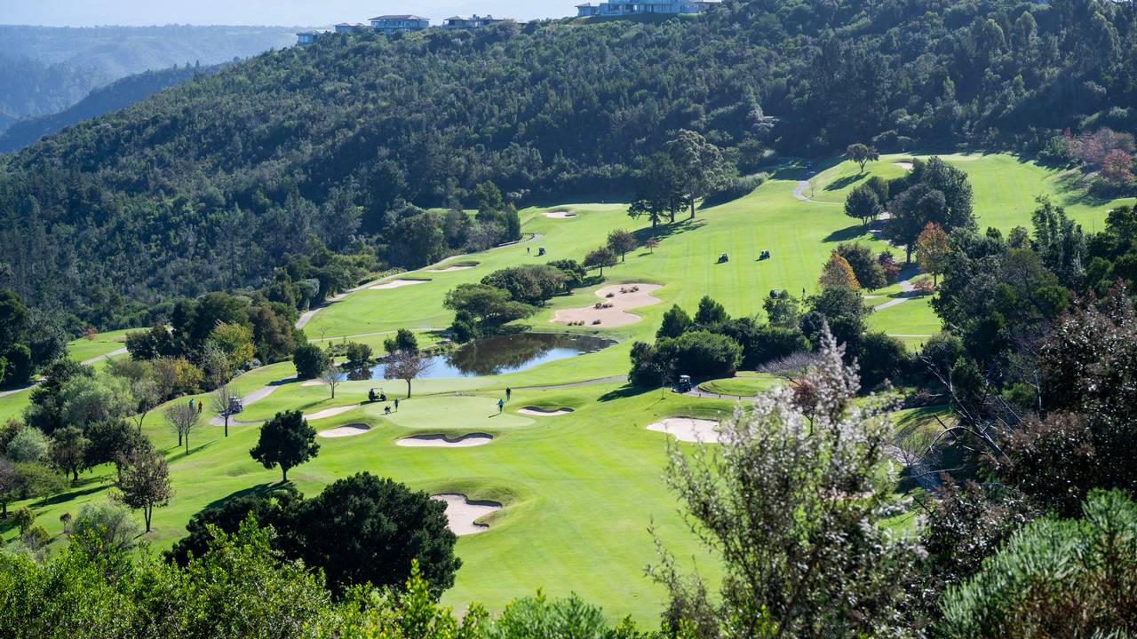 De baan biedt uitdagende holes te midden van een spectaculair landschap. Het ligt onder de hoge bergkammen en is vrij van de wind die kustgebieden zo vaak teistert. Fairways vloeien mee met de natuurlijke golvende contouren van het terrein en de ongebruikelijke configuratie van vijf par 5's en vijf par 3's voegt een nieuwe dimensie toe aan het spel. Iedere hole heeft een fraai uitzicht; ofwel over de Knysna-lagune helemaal naar de Heads of over de pittoreske Knysna-rivier die door de vallei beneden kronkelt en draait.