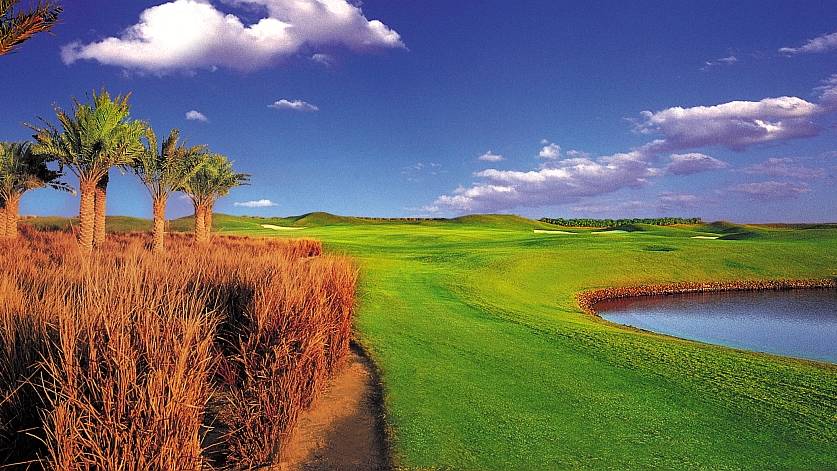 Schitterende baan met 's werelds grootste green op hole 13. Lichtglooiende fairways met 'links' trekjes, talloze bunkers en maar liefst 14 meren.