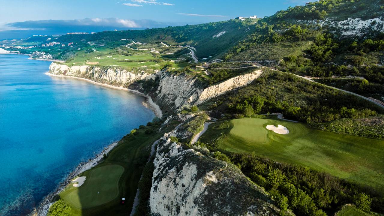Thracian Cliffs Golf is een 18 holes Gary Player Signature Course. De baan past perfect in het gebied en geeft uitzichten om nooit te vergeten. Dankzij de verschillende tees is deze baan geschikt voor golfers van alle niveaus. Elke hole is prachtig op deze baan, maar de 6e zal u zeker bijblijven. Deze hole ligt op de top van de klif met de green zo'n 40 meter lager. Deze hole is in de heuvels uitgesneden en omgeven door de golven van de Zwarte Zee.