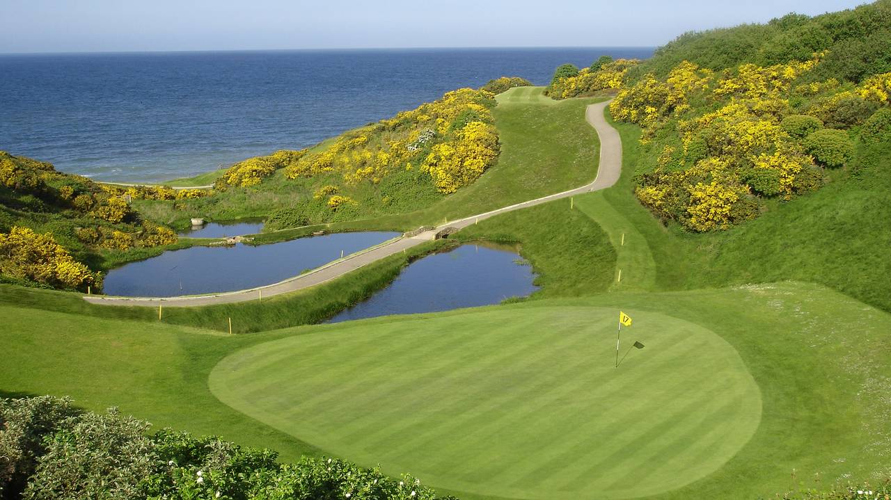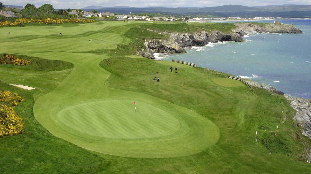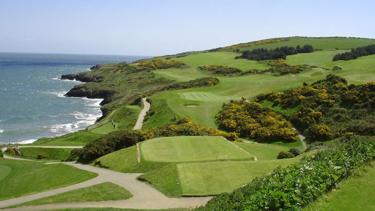 Wicklow Golf Club is een spectaculaire golfbaan op de kliffen van Wicklow Head met fantastisch vergezichten over de kustlijn van Ierland. Tussen de eerste negen, die stammen uit het begin van deze eeuw, zitten een paar rare holes. Maar wij houden wel van zo'n vleugje ouderwetsigheid. Het oorspronkelijke clubhuis heeft helaas plaats moeten maken voor een 19e hole met hedendaags comfort.