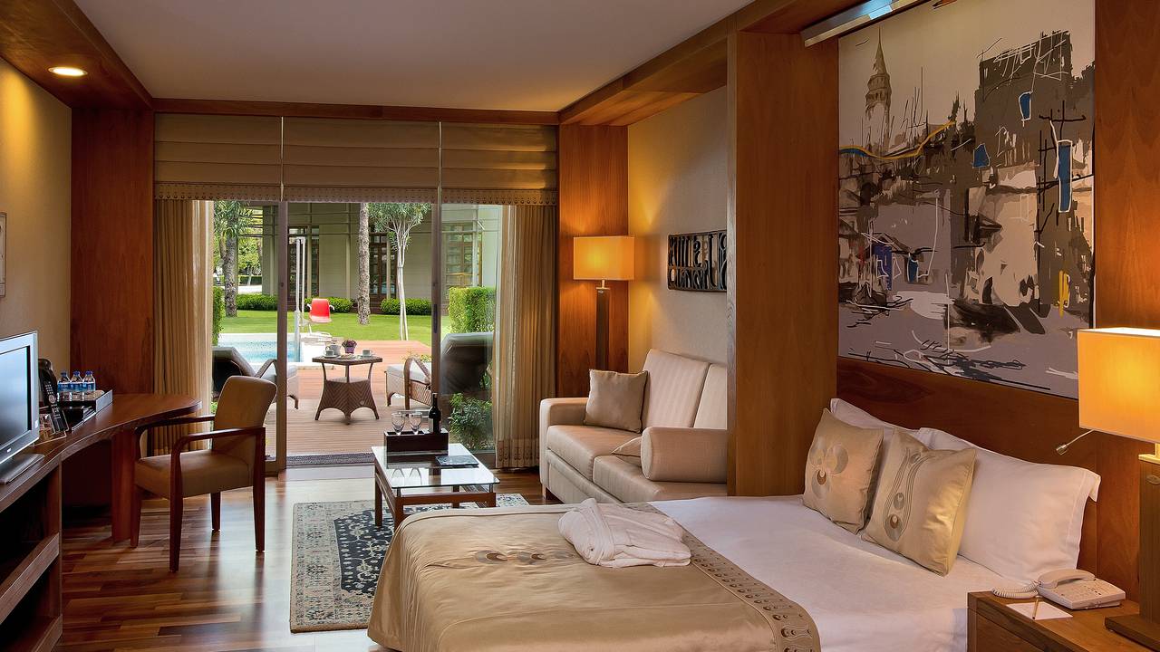 Gloria Serenity Resort staat voor absolute luxe. Alle kamers zijn ingericht met oog op uw comfort. Zoals de naam van het hotel al doet vermoeden, draait alles bij Gloria Serenity Resort om ontspanning en sereniteit. Wissel uw golfdagen bijvoorbeeld af met een bezoek aan de fantastische spa met onder andere een sauna, hammam en Turks bad. Of kom na een dagje golfen bij in een van de vele bars die het resort biedt. Het personeel van Gloria Serenity Resort zorgt ervoor dat het u aan niets ontbreekt en staat altijd voor u klaar. Het enige waar u nog aan hoeft te denken tijdens uw golfvakantie in Gloria Serenity Resort is wat u die avond gaat eten. Dankzij de verscheidenheid aan keukens van de restaurants (Japans, Turks, Frans, Mediterraans) zult u namelijk ook op culinair gebied volledig aan uw trekken komen. Afkoelen na een succesvolle golfronde zal ook geen probleem zijn. Het zwembad van Gloria Serenity Resort loopt namelijk helemaal door het resort heen. Bovendien is het resort direct verbonden met een privé strand. 's Avonds keert u terug naar uw comfortabele kamer die van alle gemakken is voorzien. Verblijft u hier in de zomer periode? Dan is zelfs de roomservice in de late uurtjes inclusief! Dus laat u lekker in de watten leggen tijdens een golfvakantie in Gloria Serenity Resort.