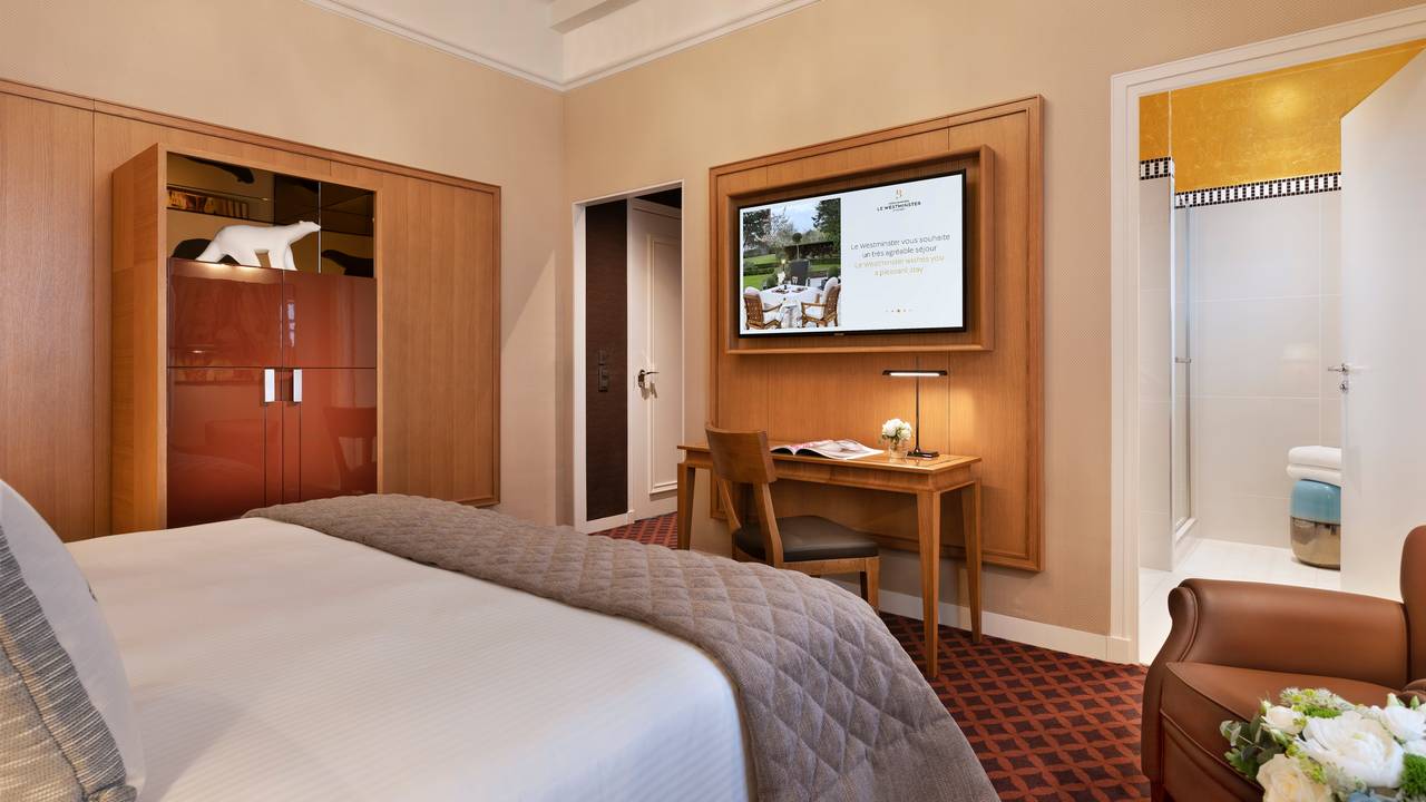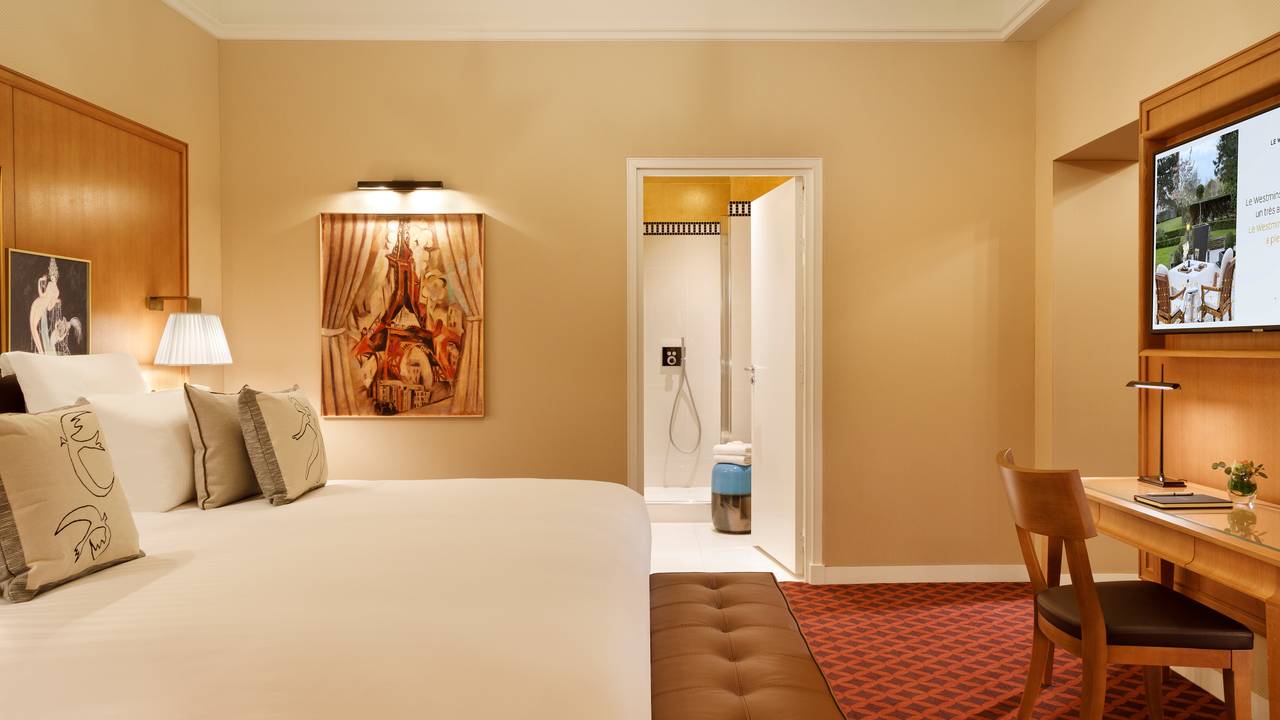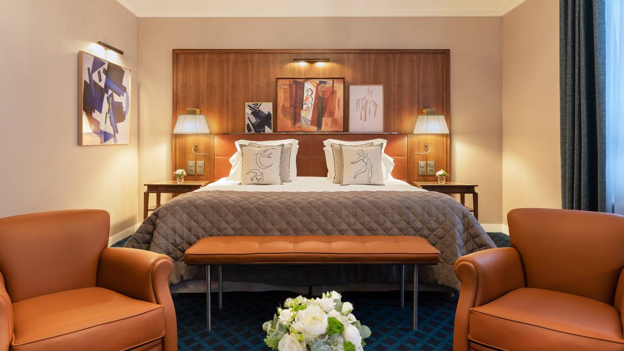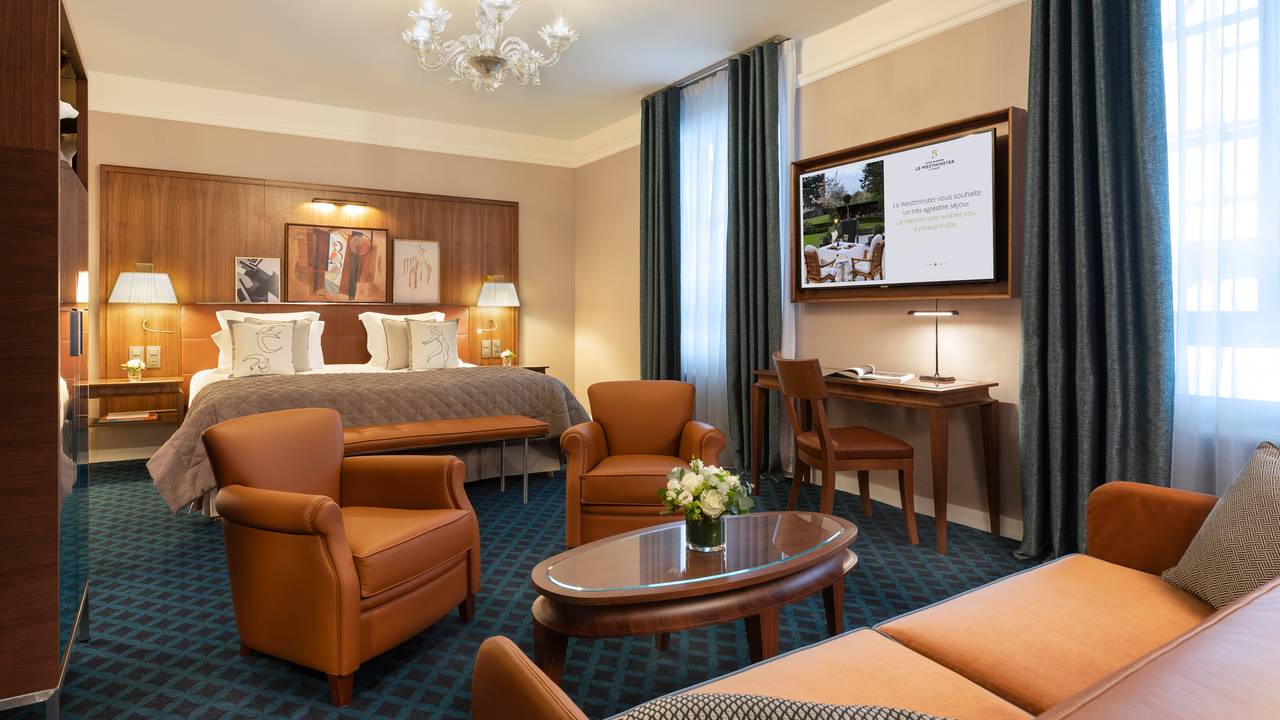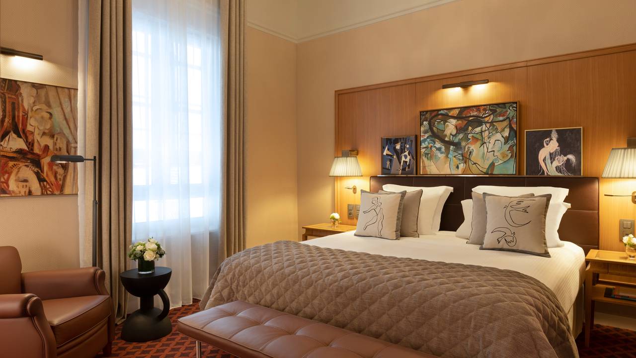 De 104 kamers en suites van Le Westminster zijn voorzien van airconditioning en zijn volledig opnieuw ingericht door Bruno Borrione.