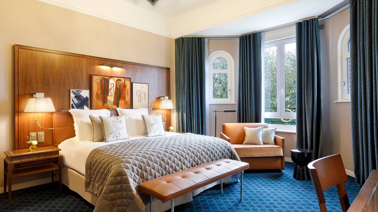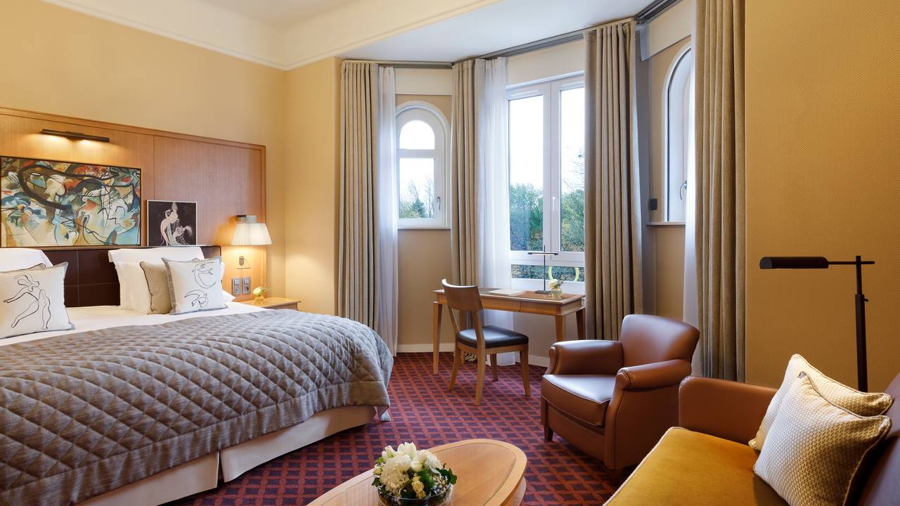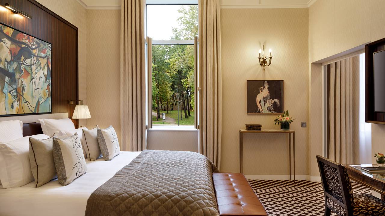 2-pers. kamer superior: ruime elegante kamers aan de voorzijde van het hotel met uitzicht op het park.