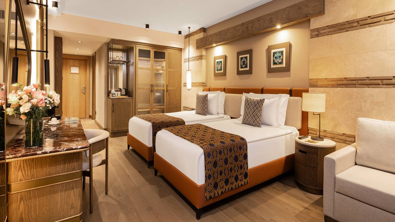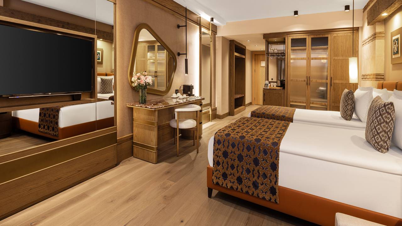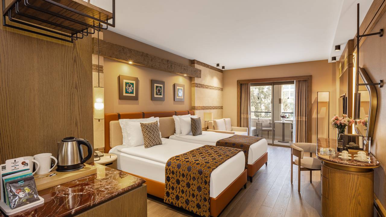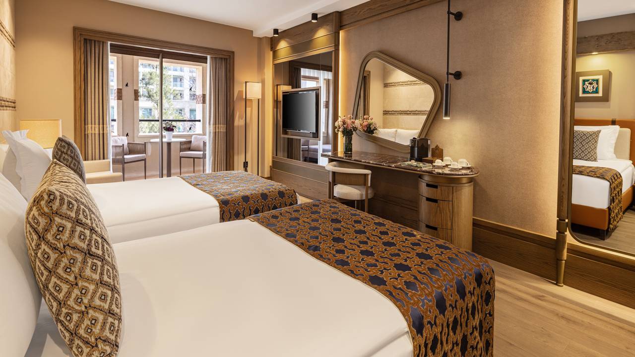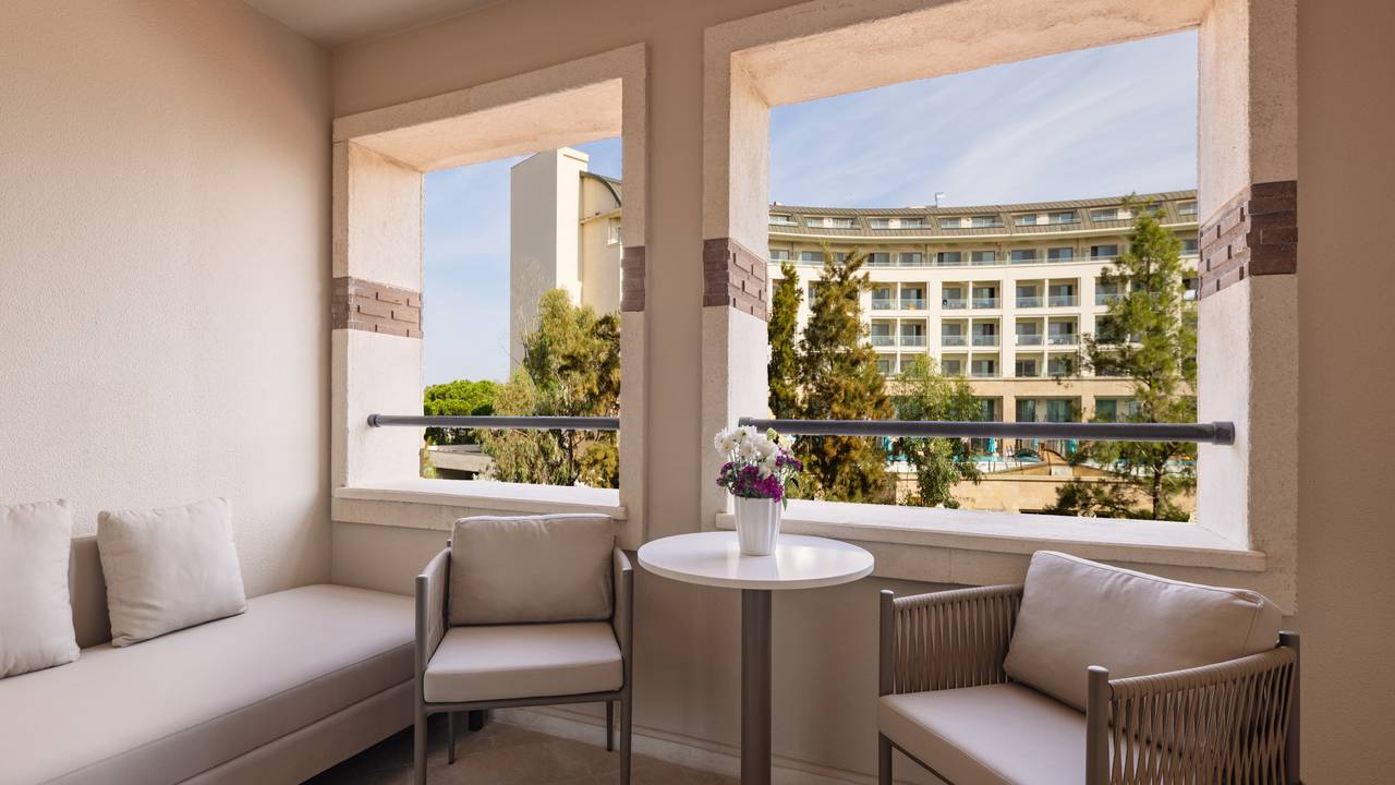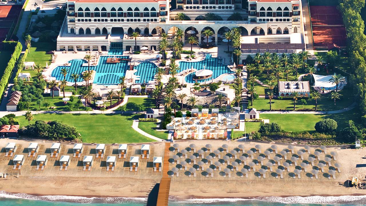 Deze accommodatie is gebouwd in traditionele Seljuk-stijl en bestaat uit 158 kamers en suites in het hoofdgebouw en 18 villa's, direct gelegen te midden van de Pasha en PGA Sultan Golf Courses, beide 18-holes Championship Courses en vormen de PGA National Turkey.