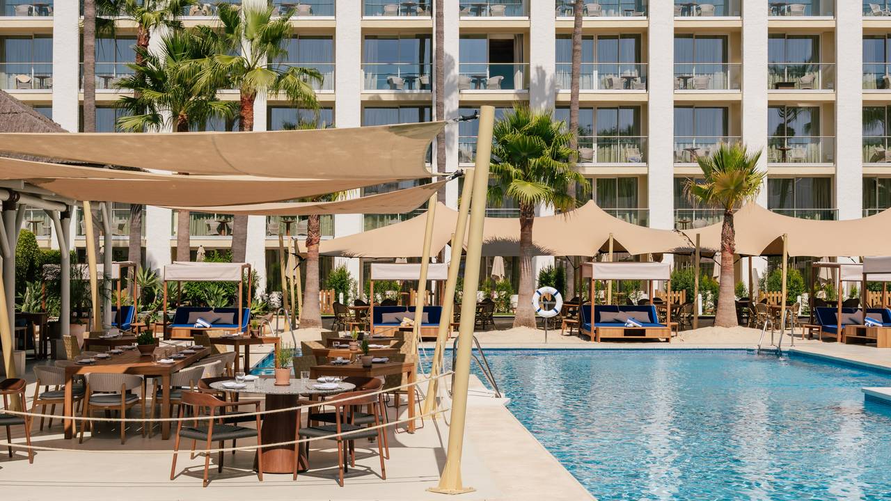 Ontdek dit luxe en elegante viersterrenhotel gelegen in Puerto Banus. Het hotel is in 2024 en 2025 compleet gerenoveerd. Marbella, een populaire toeristische bestemming in het zuiden van Spanje. Het luxe ME Marbella biedt 3 buitenbaden, waaronder een zwembad voor alleen volwassenen en een kinderzwembad.