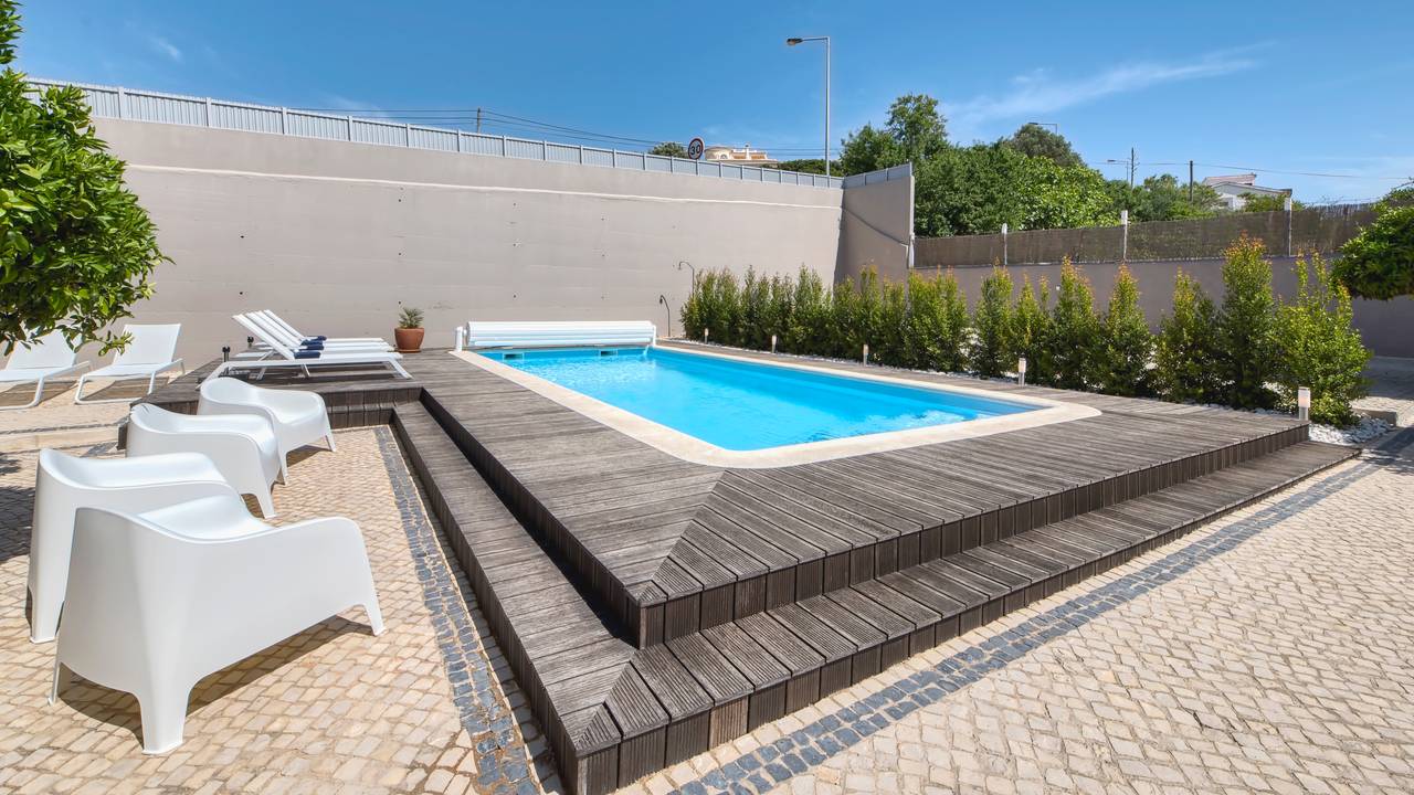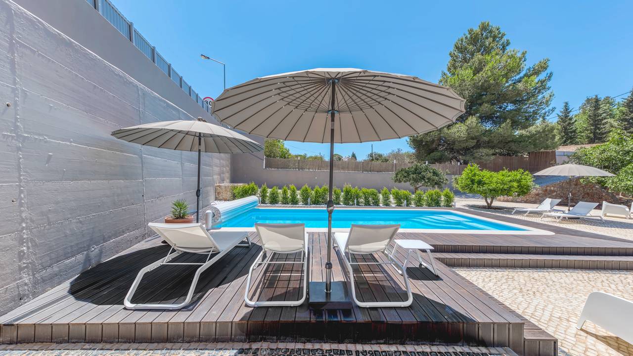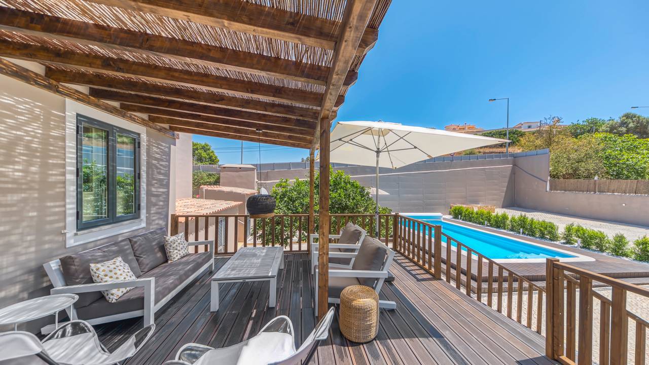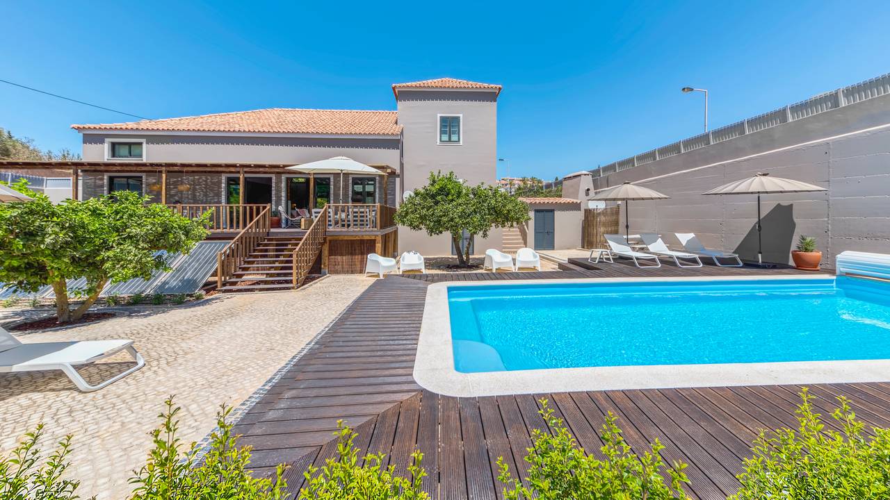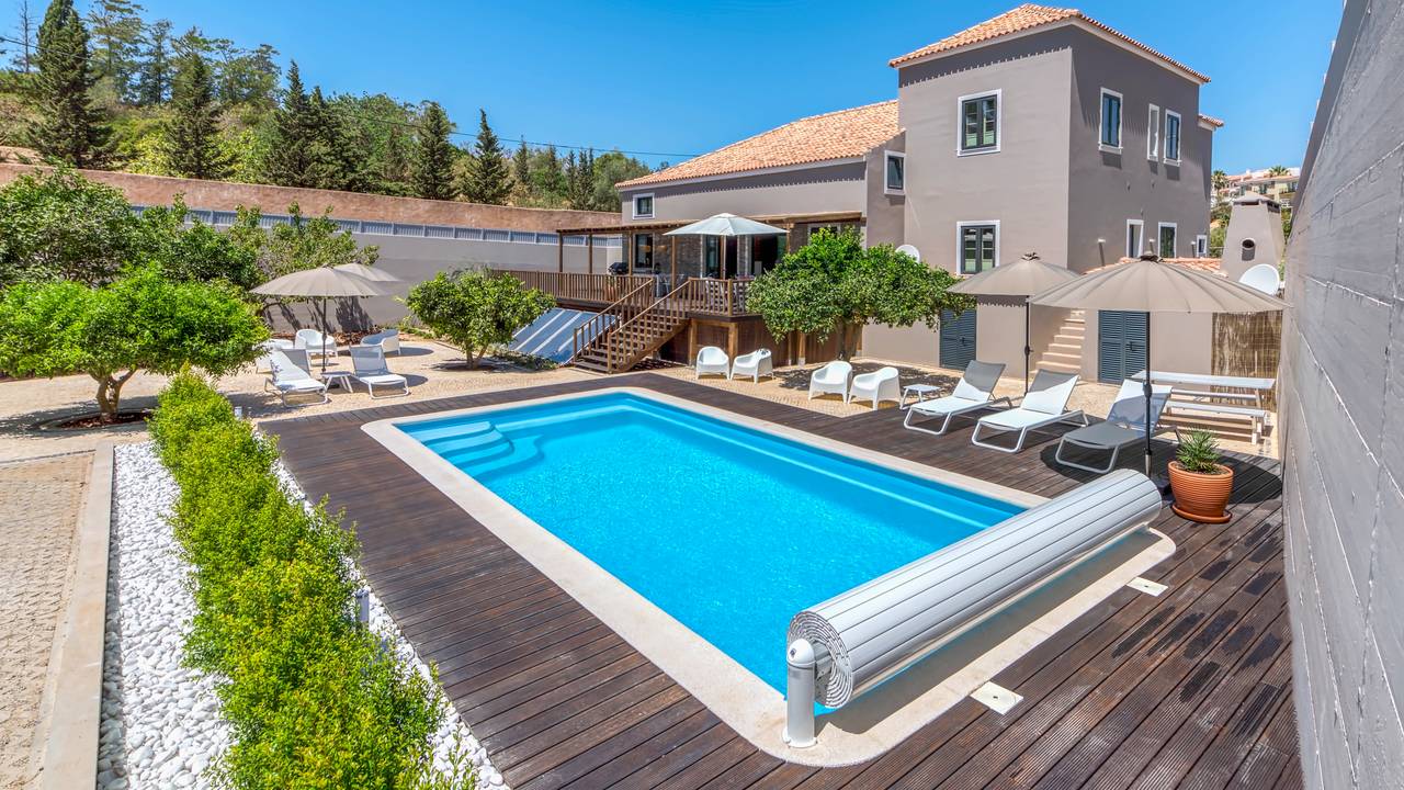 De naam ‘cocheira’ is Portugees voor ‘koetshuis’ en dit was ook de vroegere functie van dit prachtig gelegen beachhouse vlakbij Praia Grande, het uitgestrekte strand van Ferragudo. Het koetshuis behoorde bij het naastgelegen kasteel van Ferragudo, maar is in de vorige eeuw afgesplitst en heeft een zelfstandige functie gekregen. In 2016 hebben de huidige eigenaren de transformatie tot luxe villa ingezet en dit heeft geresulteerd in een uniek beachhouse op 2 minuten lopen van het strand en 10 minuten naar het centrum van het dorp. Daarnaast liggen er maar liefst 9 golfbanen op een maximale afstand van 20 minuten rijden.De villa beschikt over acht 2-persoons slaapkamers met voor elke slaapkamer een eigen badkamer, met inloopdouche, wastafel en toilet. De ruime living beschikt over een heerlijke loungebank, kleine bar en eettafel voor 16 personen. De living heeft een prachtig uitzicht op het terras en ruime tuin met onverwarmd zwembad. De inloopkeuken beschikt over 2 ijskasten, vriezer, wijnkoelkast, vaatwasser en grote kookplaat (inductie). De grote vide met tv-hoek geeft mooi uitzicht op de living en keuken. De ruime entrée geeft toegang tot de vide en hier bevindt zich tevens het gastentoilet. Vanuit de living geven twee ruime schuifpuien toegang tot de grote lager gelegen tuin met een grote diversiteit aan fruitbomen. Aan de zijkant van de villa bevindt zich een heerlijk terras.
