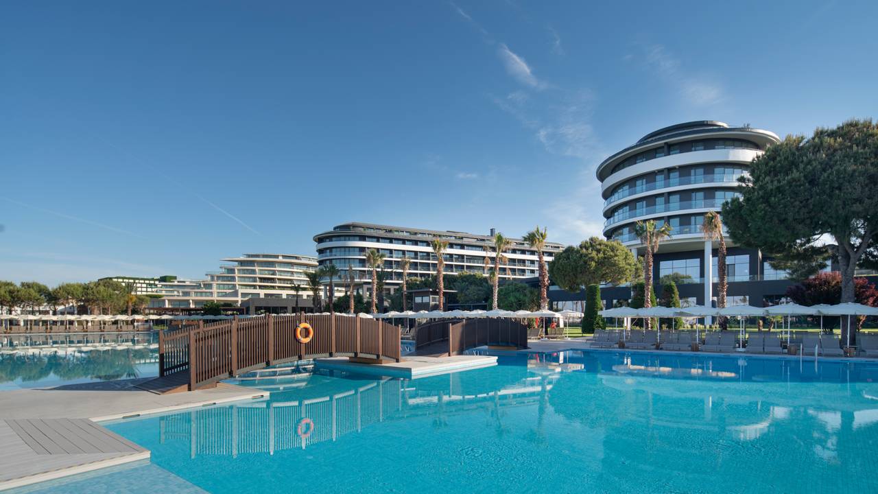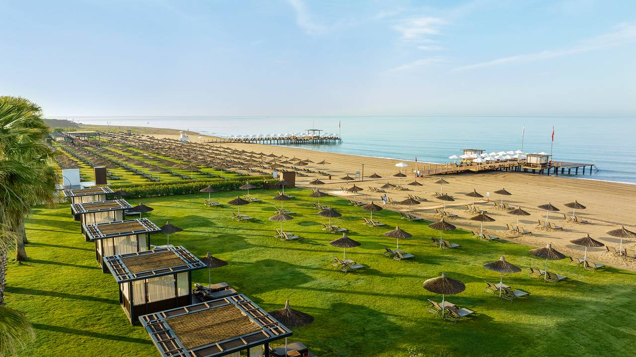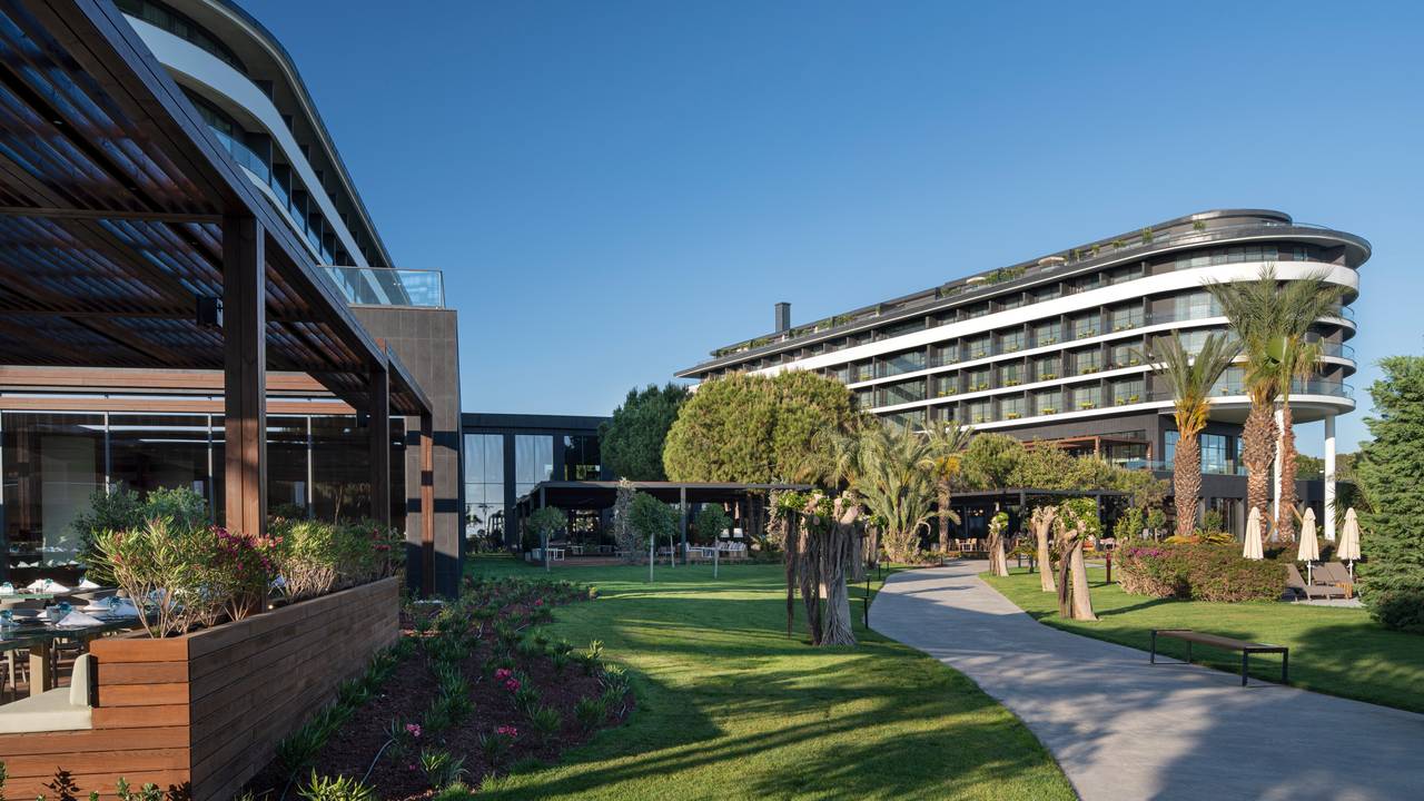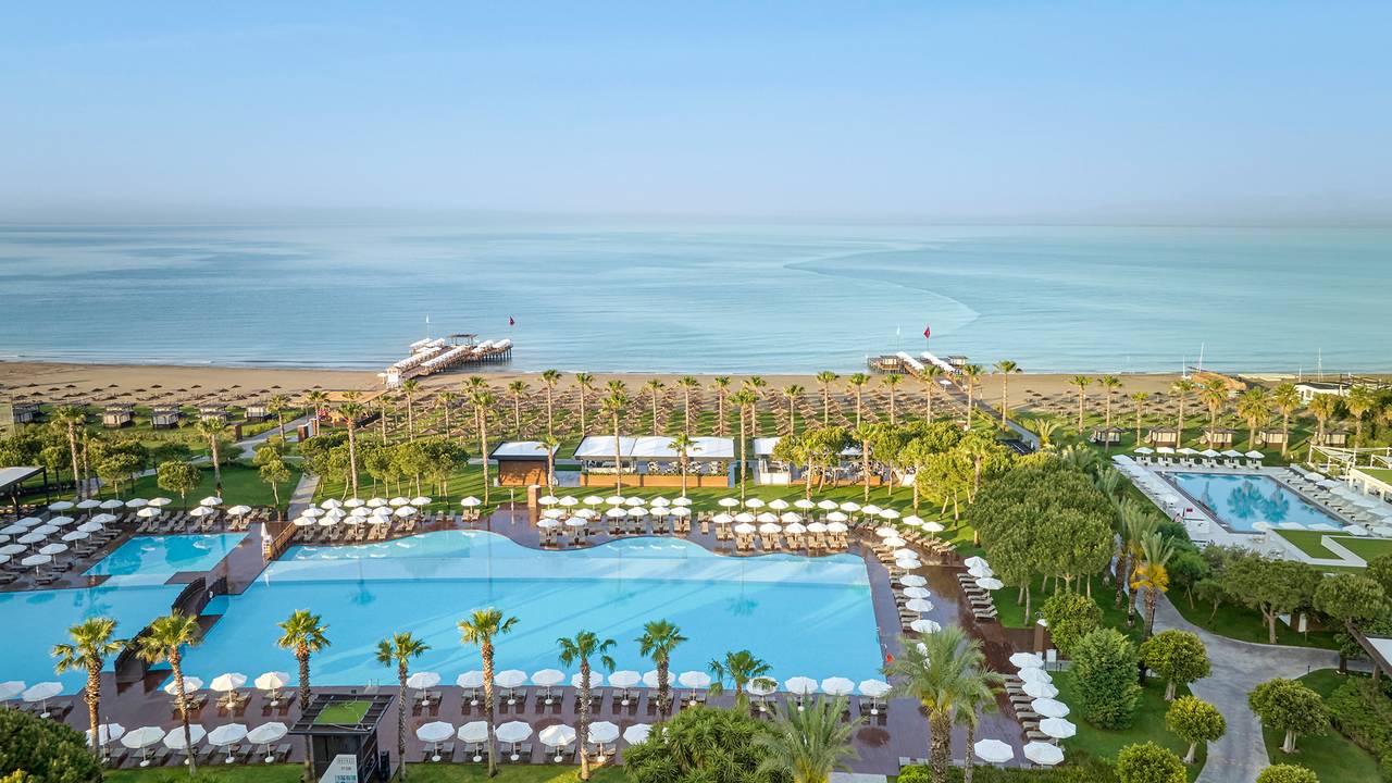 Voyage Belek Golf & Spa is een compact 5-sterrenhotel hotel gelegen in een prachtige groene tuin en direct aan het strand. Het hotel staat bekend om zijn uitstekende service en kwaliteit. De zwembaden en de spa bieden een goede setting om heerlijk te ontspannen. De uitdagende Montgomerie golfbaan ligt op een steenworp afstand en ook de golfbaan Tat bevindt zich op korte afstand. Voyage Belek biedt de ideale mogelijkheden voor een relaxte golfvakantie.