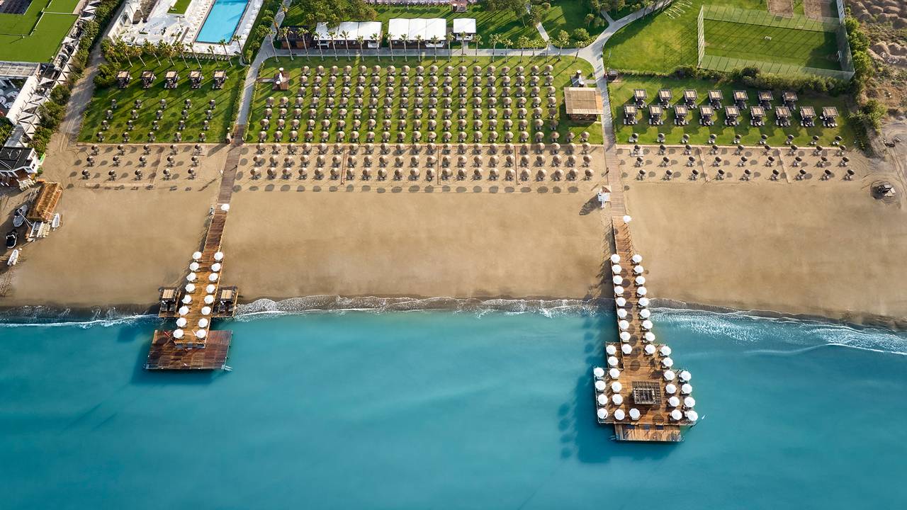 Voyage Belek heeft een eigen 300 meter lang zandstrand en beschikt over aanlegsteigers en stranden met gedeeltes exclusief voor volwassenen en exclusief voor gezinnen. Naast het hoofdzwembad met een oppervlakte van 1.800 m² , beschikt het hotel over een verwarmd tuinzwembad, een zwembad exclusief voor volwassenen, een binnenzwembad en een overdekt kinderbad. Het lagunabad is speciaal voor Laguna Duplex Villa gasten, met directe toegang vanaf deze villa's. Het leuke aquapark van het resort beschikt over aparte zwembaden die zijn ontworpen voor zowel kinderen als volwassen en biedt aan een ieder leuk amusement.