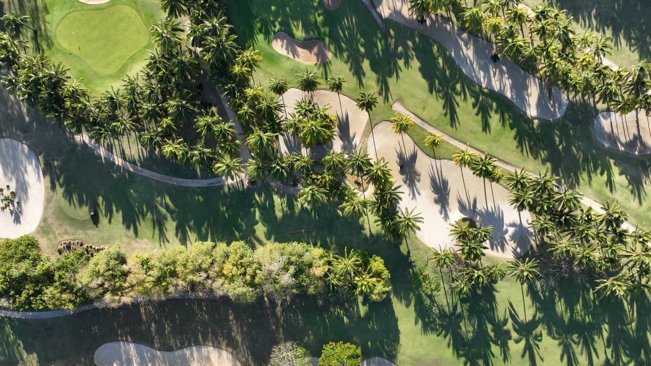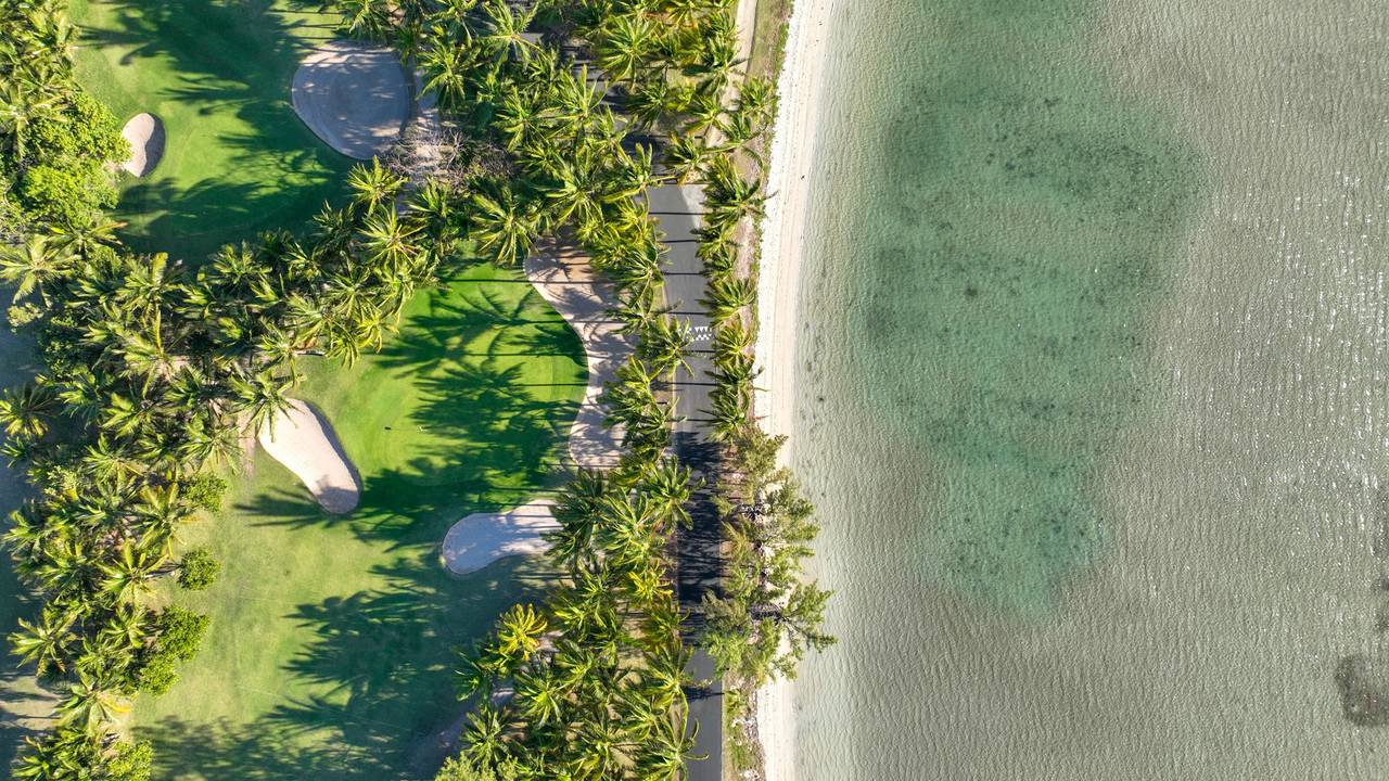 De gladde groene fairways zijn bezaaid met de felle kleuren van bougainville, flamboyanten, poinsettia's en araucarias, terwijl de koninklijke palmen, filao en kokospalmen het plaatje van tropische eilandstijl compleet maken.