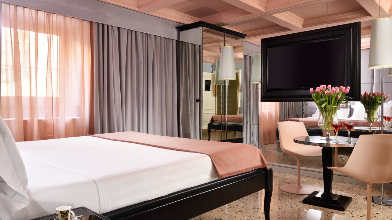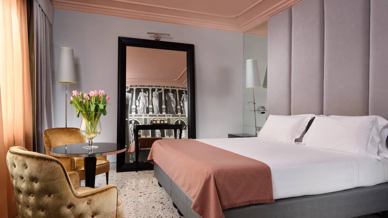 Het hotel beschikt over ruime en luxe kamers die van alle gemakken voorzien zijn zoals: een airconditioning, luxe meubels, een marmeren badkamer en een mooi uitzicht op het historische centrum!