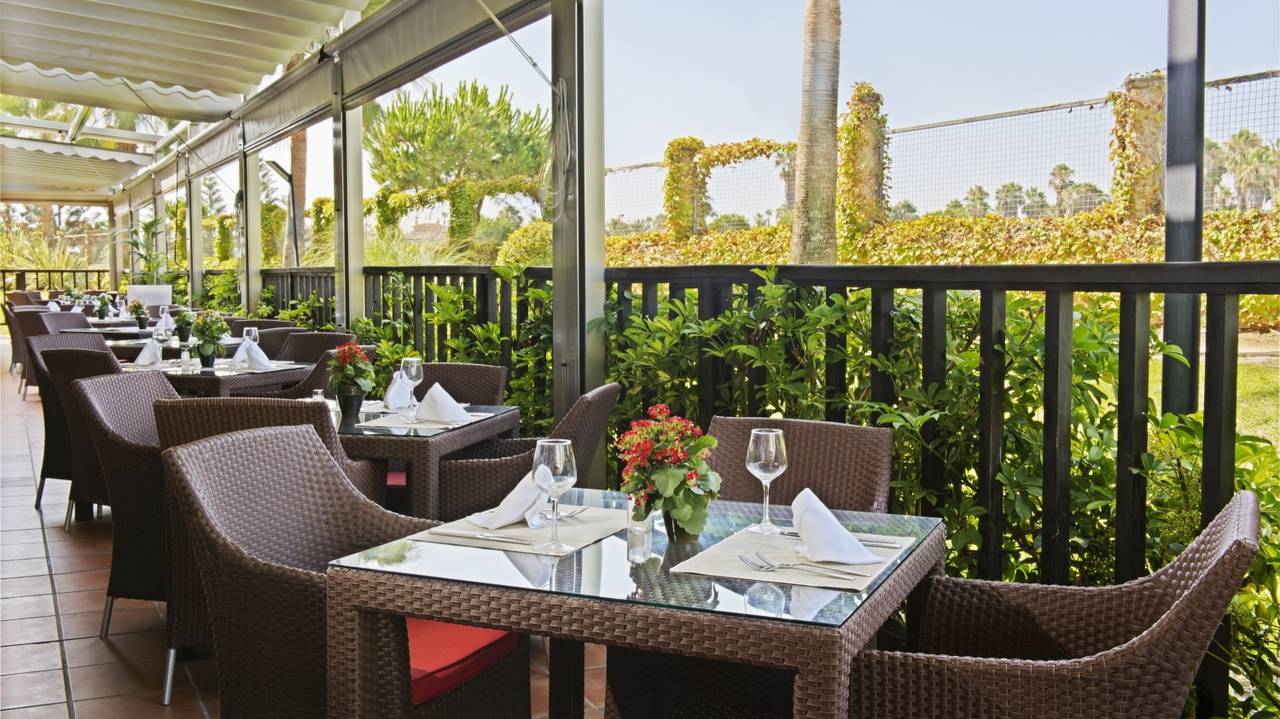 Restaurant ‘’Gades’’ heeft een uitgebreid buffet met internationale gerechten, verse vis en zeevruchten die elke dag op duizend manieren worden bereid, met een buitenterras en ‘showcooking’ waar u kunt genieten van de typische gerechten uit de Cádiz-keuken, met een prachtig uitzicht op de hoteltuinen en op de golfbaan.