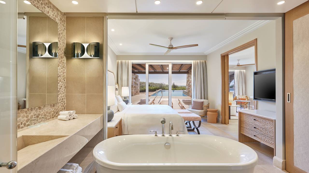 Het hotel is gebouwd in een oude Messini-stijl met licht hout, zee-en zand tinten. U vindt er 445 kamers bestaande uit tweepersoonskamers, familie kamers en luxe suites. Elke kamer heeft een eigen terras of balkon met prachtige uitzichten. De meeste kamers op de begane grond hebben zelfs een eigen privé infinity pool, vraag ernaar bij uw reisadviseur.