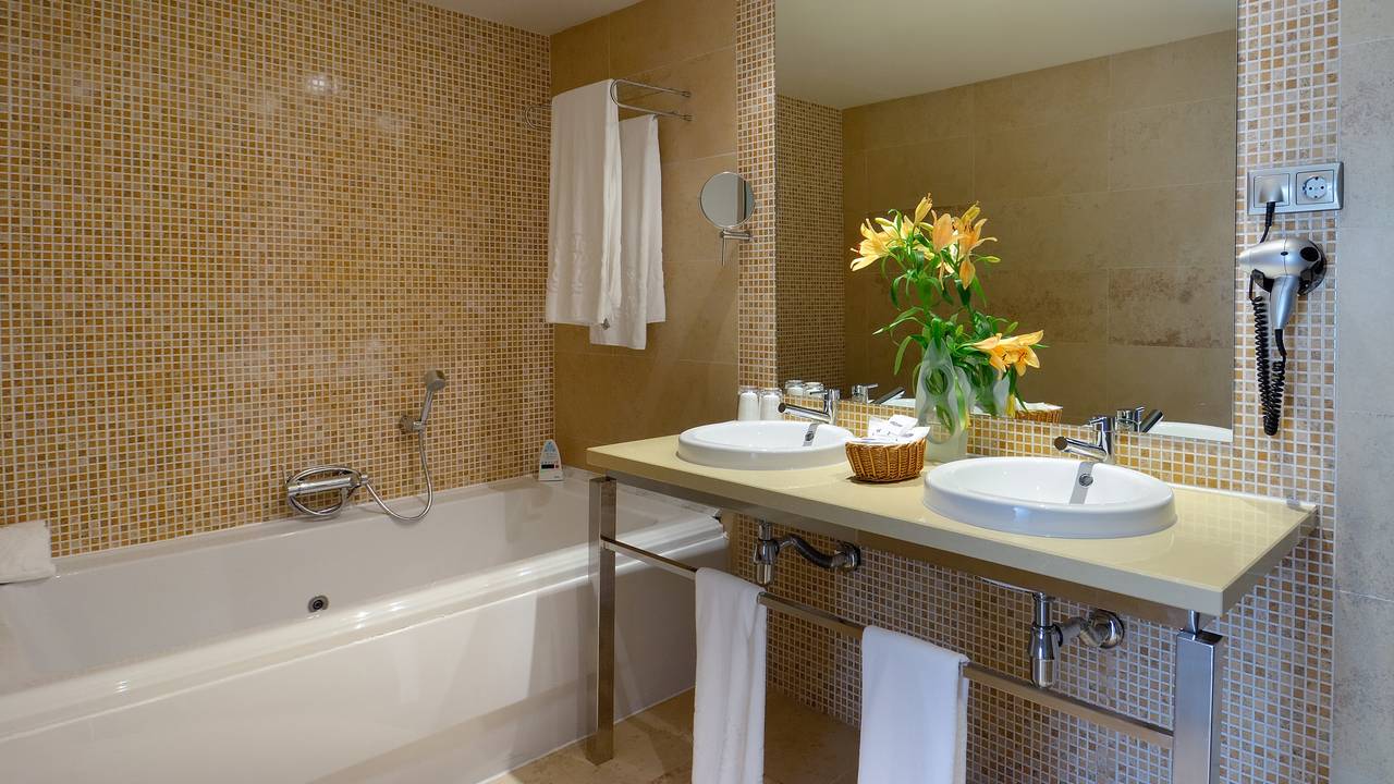 comfortabel ingericht en voorzien van telefoon, sat.-tv, kluisje, minibar en airco. Badkamer met bad/douche, toilet en föhn.