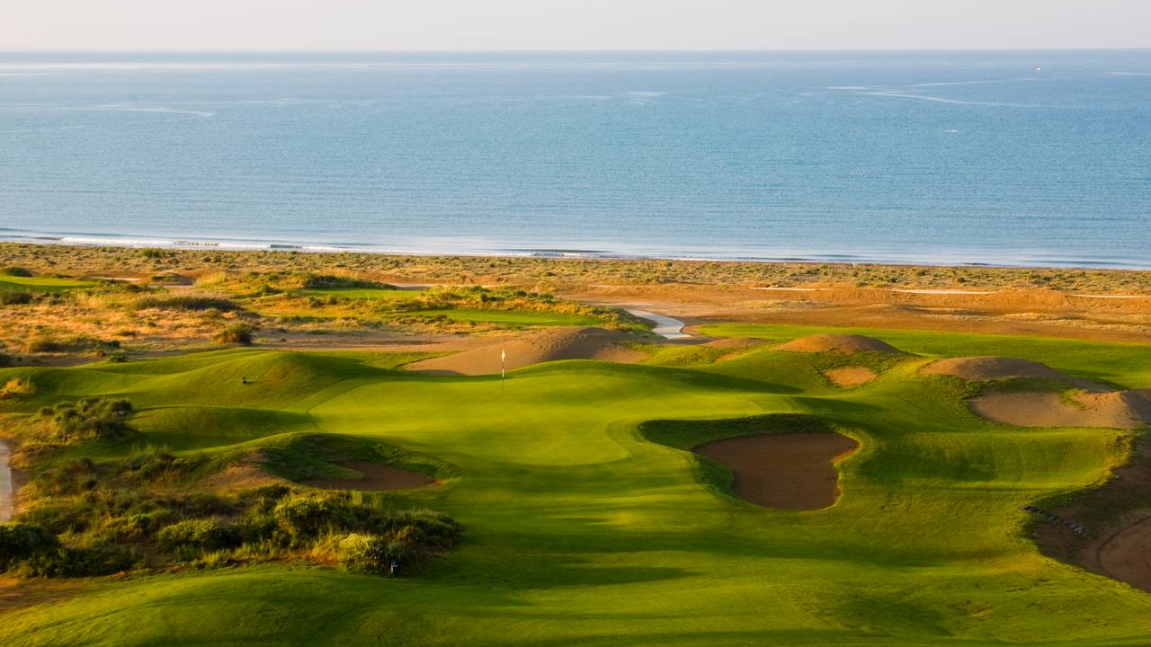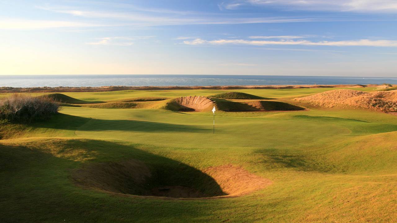 Echte links course direct aan zee met grote bunkers, snelle greens en vriendelijke fairways