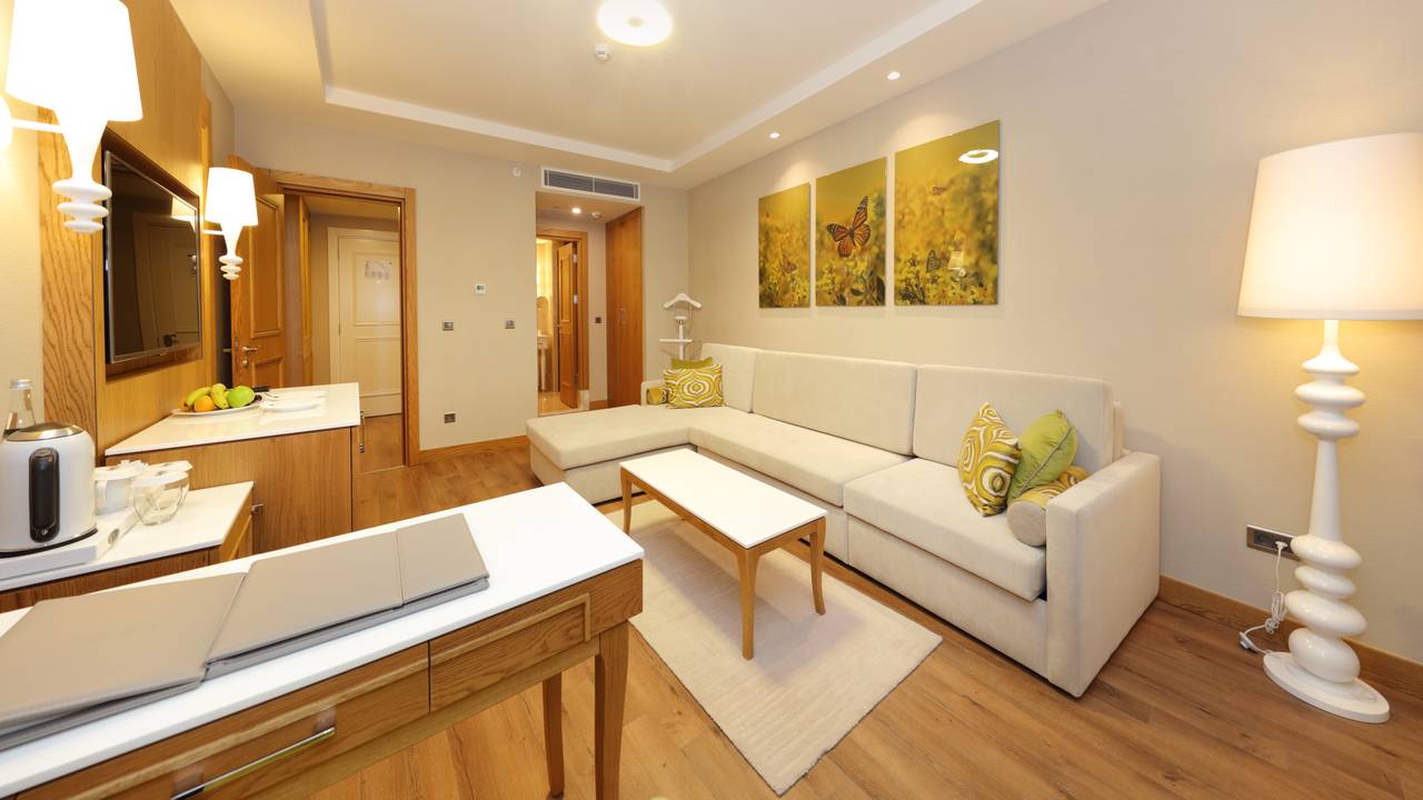 Het hotel bestaat uit twee vleugels die zich spreiden vanuit de grote lobby. Zo’n 80% van de kamers aan de voorzijde hebben uitzicht op de Middellandse Zee. De standaardkamers zijn 45 m² groot en hebben standaard een inloopkast en een zithoek. U verblijft in Sueno Deluxe op basis van all-inclusive van hoog niveau. Met grote zwembaden, een pier, entertainmentcentrum, spafaciliteiten en een overvloed aan restaurants en bars is dit indrukwekkende hotel een geweldige aanvulling op het kleinschaligere Sueno Golf Resort.